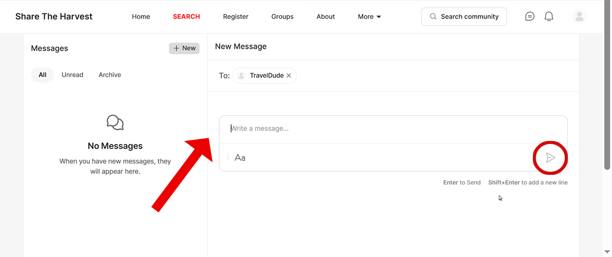 Write your message to them and then click Enter key to send your message or click the paper airplane icon in the lower right. (Usually Growers setting up a 2 to 4 hour window for people to come and pick works although a Grower could do an all day pick if they choose to.)